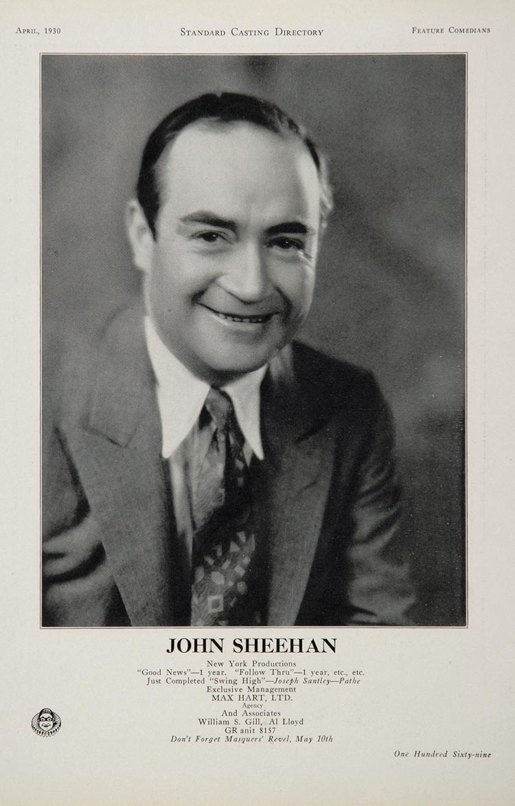 This is an original 1930 casting ad for actor / comedian John Sheehan. He was in "Good News," "Follow Thru," and "Swing High."