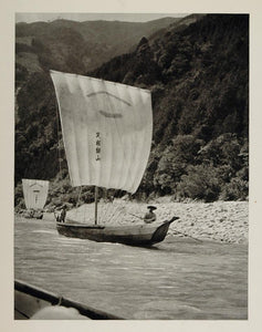 1930 Kisogawa River Japanese Sailing Boat Sail Japan - ORIGINAL PHOTOGRAVURE JK1