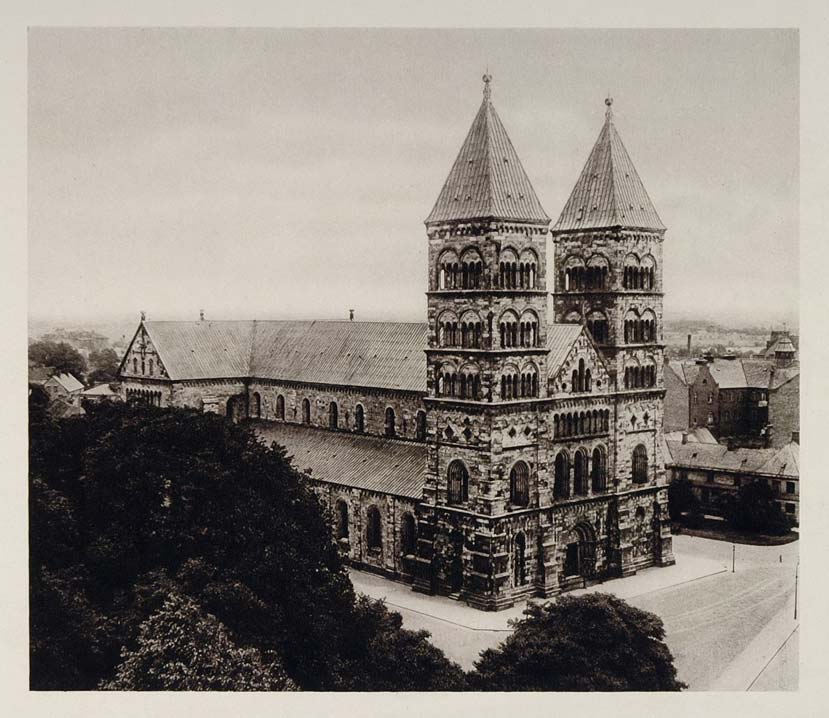 1930 Lund Cathedral Lutheran Church Sweden Photogravure - ORIGINAL SC2