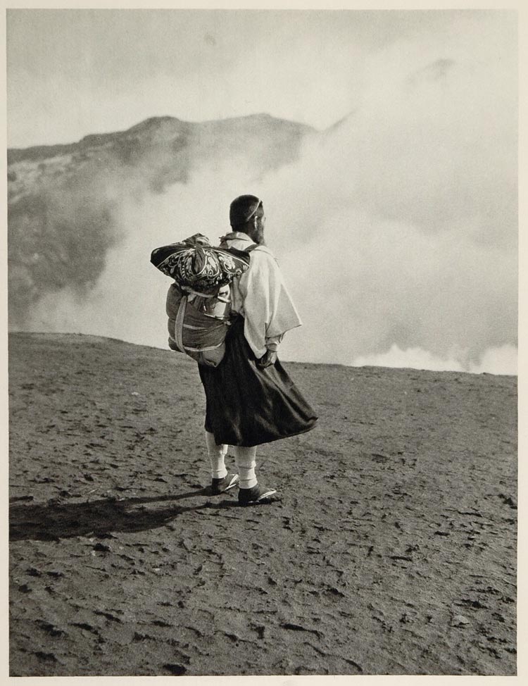 1930 Man Aso Volcano Crater Kyushu Japan Photogravure - ORIGINAL JAPAN2
