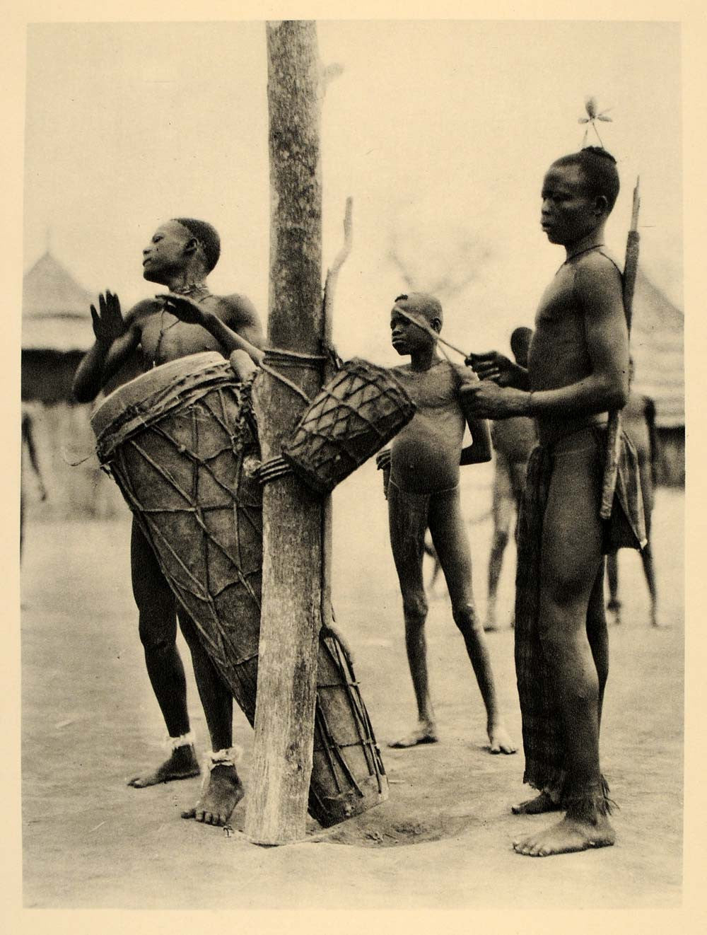 1930 Moru Musicians Drums Sudan Africa Hugo Bernatzik - ORIGINAL AF2