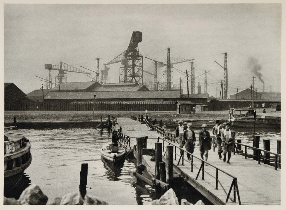 1930 Osaka Harbor Japan Shipyard Dock Workers Trautz - ORIGINAL JAPAN2