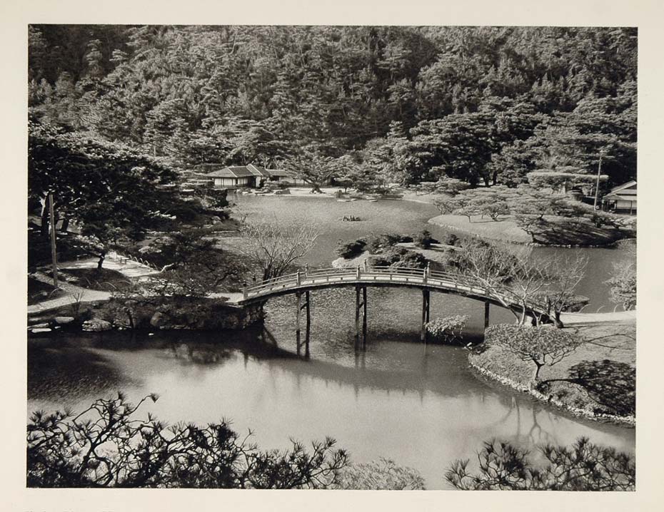 1930 Photogravure Aerial View Ritsurin Koen Garden Park Japan Bridge JK1