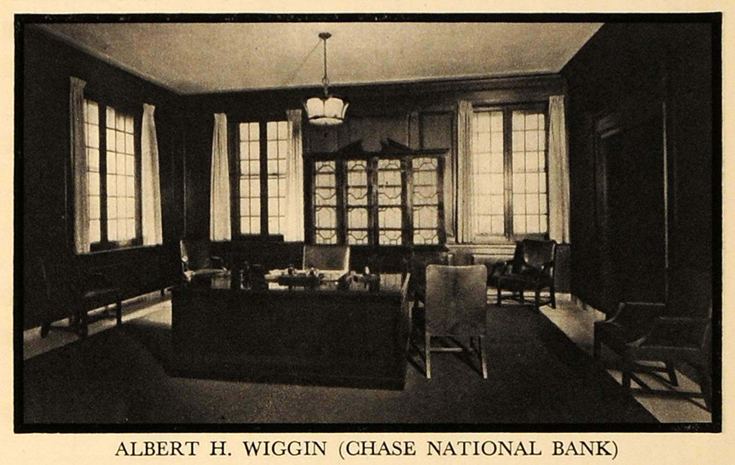 This is an original 1930 halftone print of the office of Albert H. Wiggin of Chase National Bank.