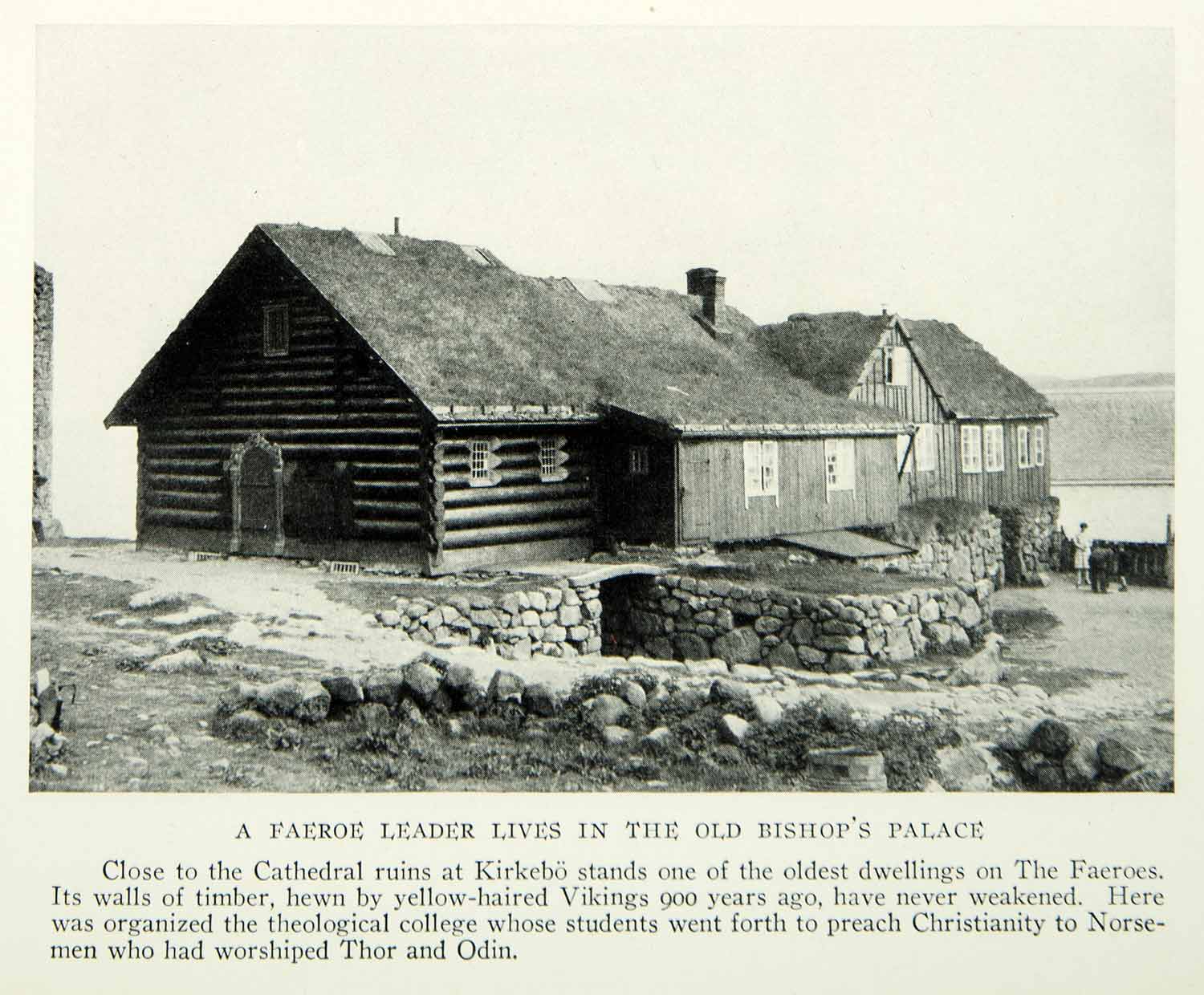 This is an original 1930 black and white halftone print of a palace in the Faroe Islands.