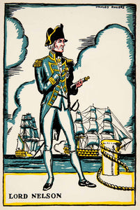 Period Paper is pleased to offer a collection from 1930 of black and white relief line-block prints and color offset lithographs by the noted marine author and illustrator, Stanley Rogers (1888-1961). The images in this collection depict the history and lore of the Atlantic Ocean -- the famous ships that crossed her and the famous, and sometimes infamous, folks who sailed her.