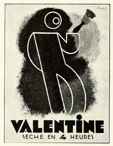 This is an original 1930 black and white halftone print of a French advertisement for Valentine paint. Please be sure to note the size of this item.