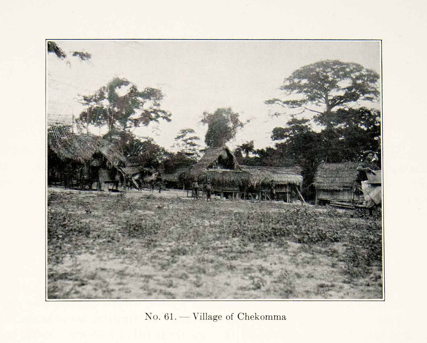 This is an original 1930 black and white halftone print of the Village of Chekomma in Liberia.