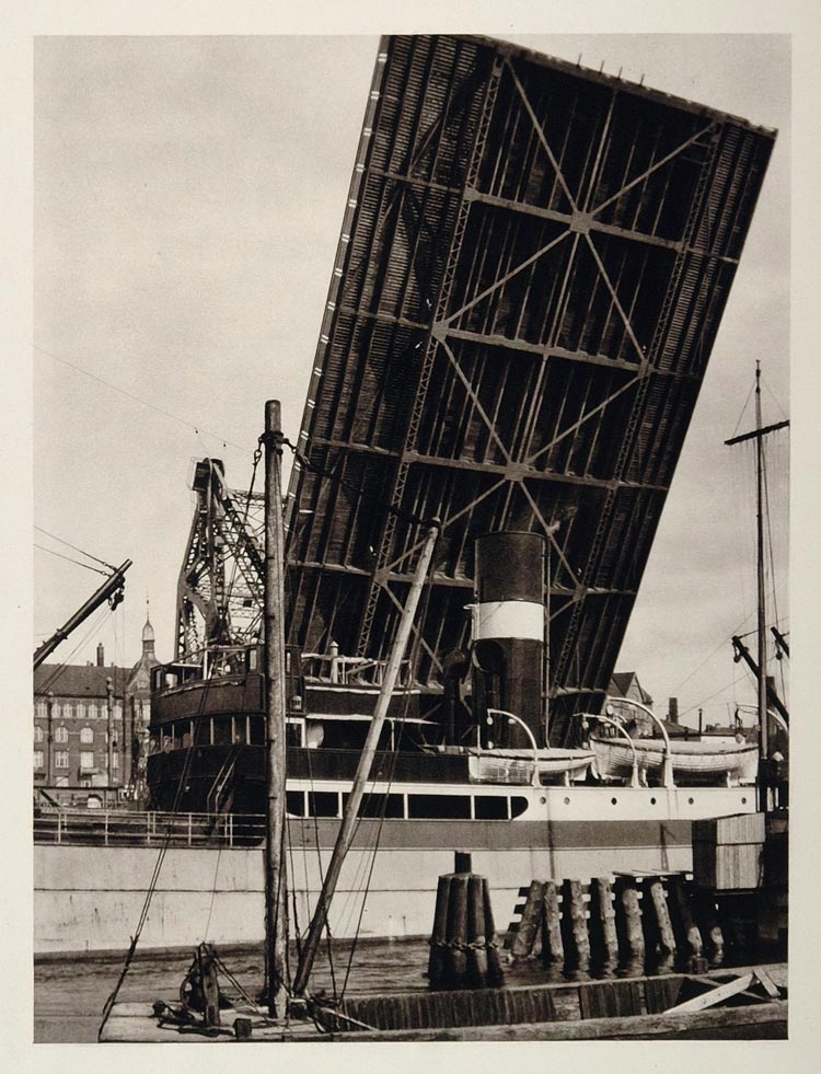 1930 Ship Langebro Long Bridge Drawbridge Copenhagen - ORIGINAL PHOTOGRAVURE SC2