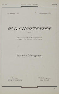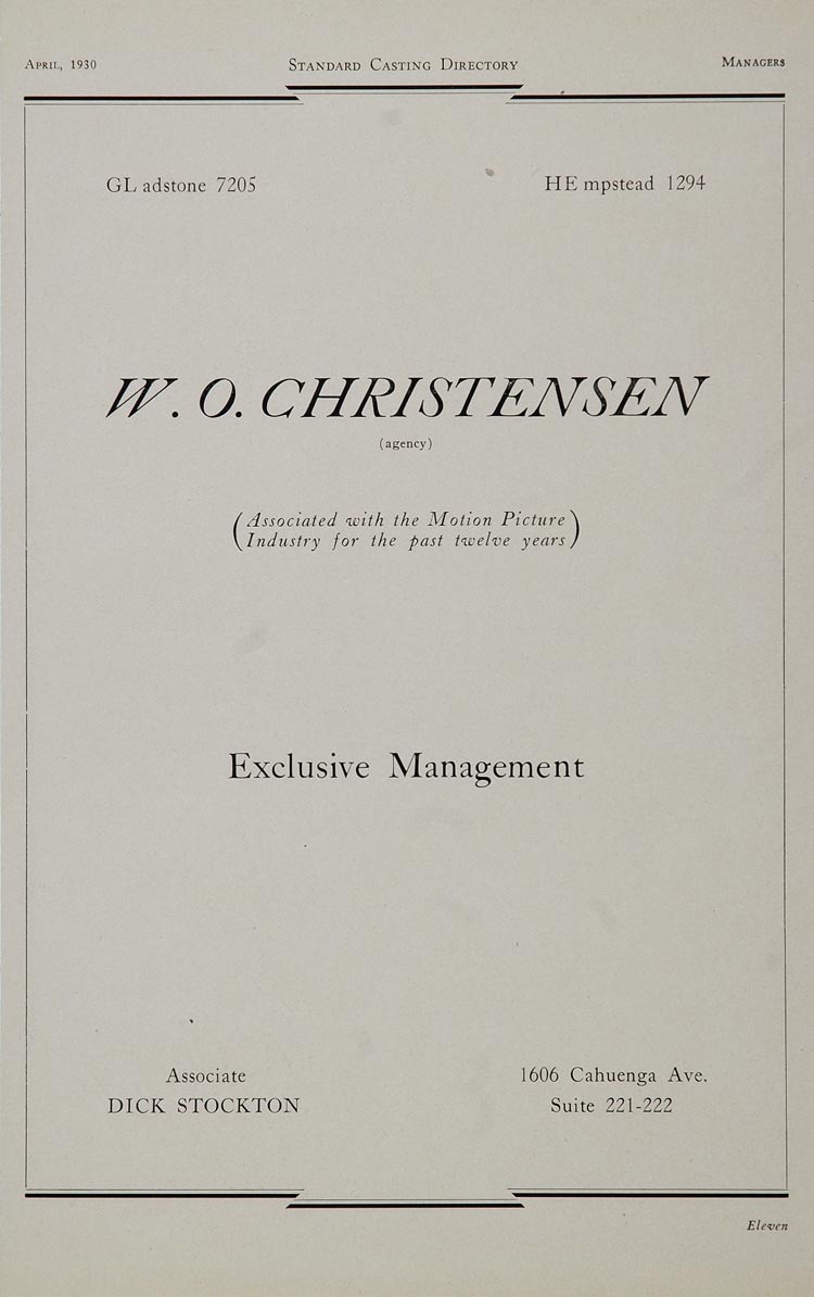 This is an original 1930 casting ad for the W. O. Christensen Agency (associated with the Motion Picture Industry for the past twelve years). Associate: Dick Stockton.
