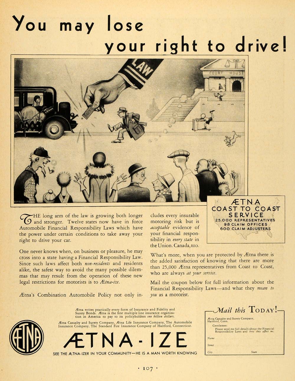 1931 Ad Aetna Automobile Financial Responsibility Law - ORIGINAL ADVERTISING F1A