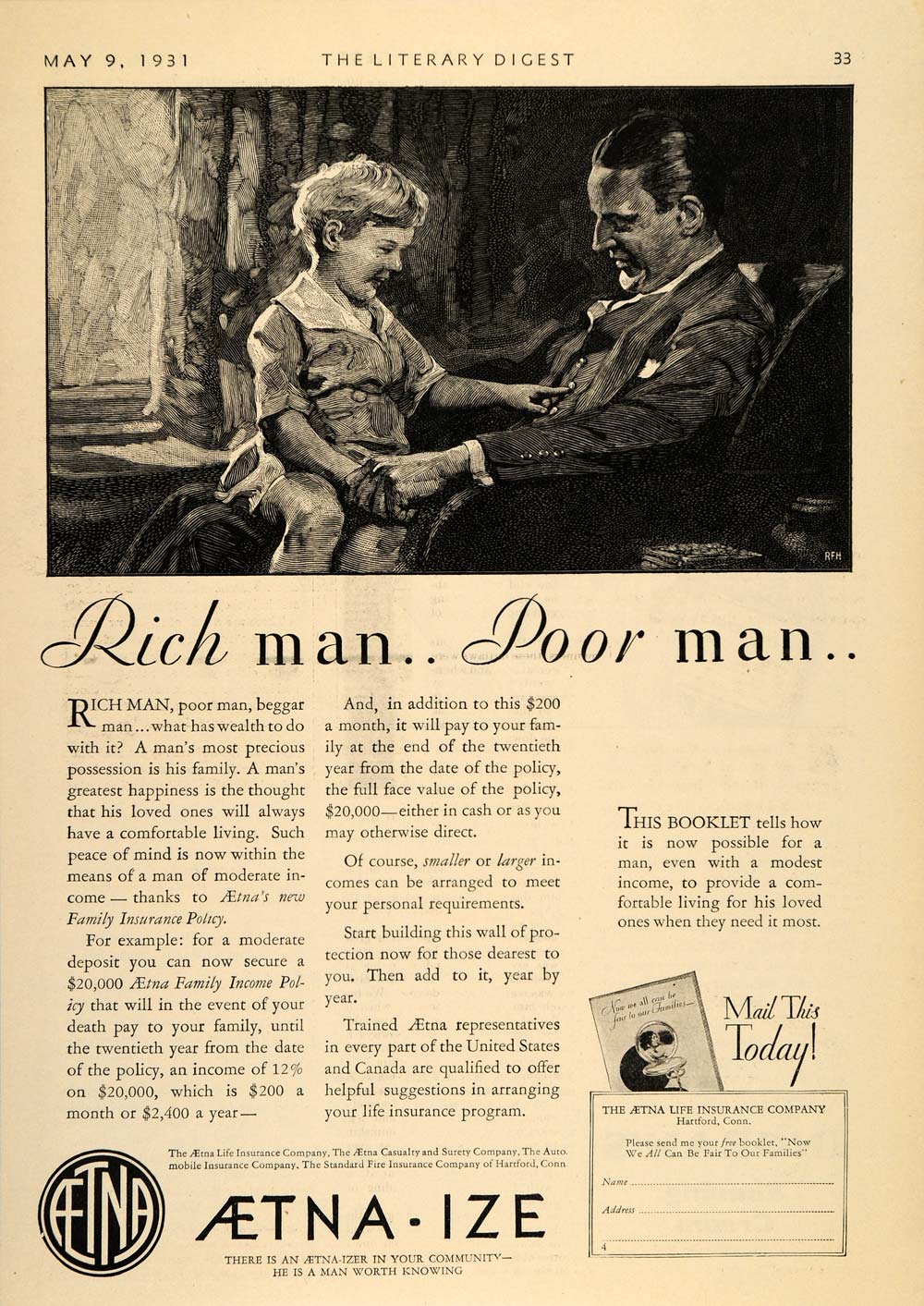 This is an original 1931 black and white print ad for the Aetna Life Insurance Company of Hartford, Connecticut.
