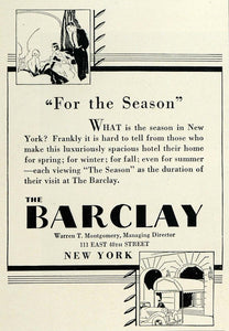 This is an original 1931 black and white print ad for The Barclay Hotel, located at 111 East 48th Street in New York.