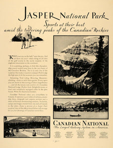 This is an original 1931 black and white print ad for the Canadian National Railway, promoting tourism, vacationing and travel to Canada.