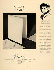 This is an original 1931 black and white print ad for Crane's Fine Letter Papers, featuring Crane's Greylawn letter paper.