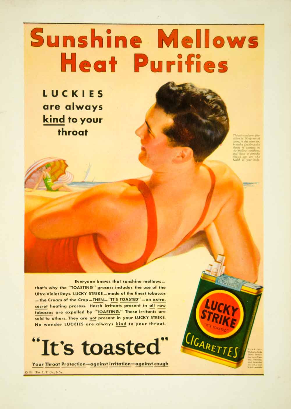 This is an original 1931 color print ad for Lucky Strike Cigarettes.
