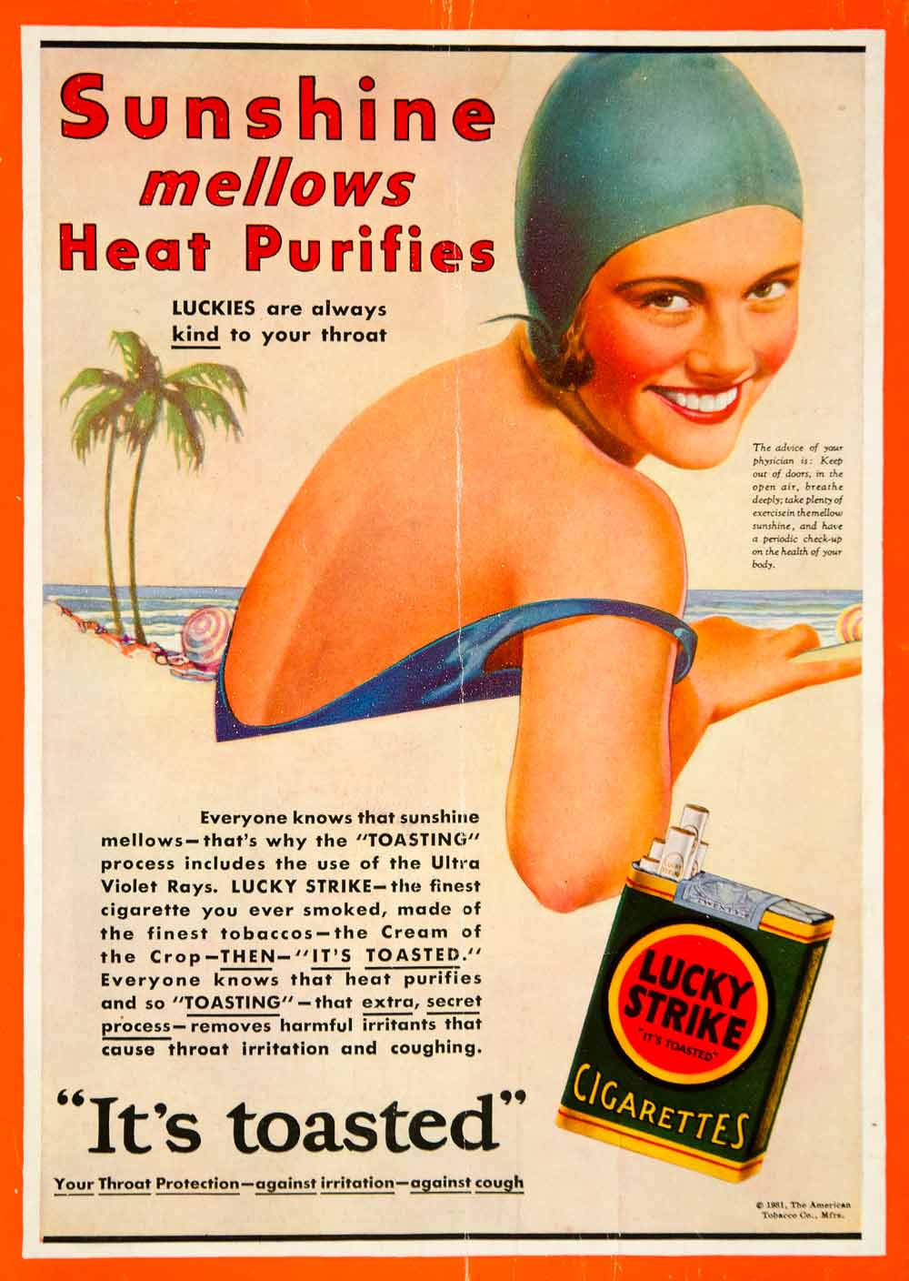 This is an original 1931 color print ad for Lucky Strike cigarettes that were made and sold by the American Tobacco Co. during the Great Depression era.