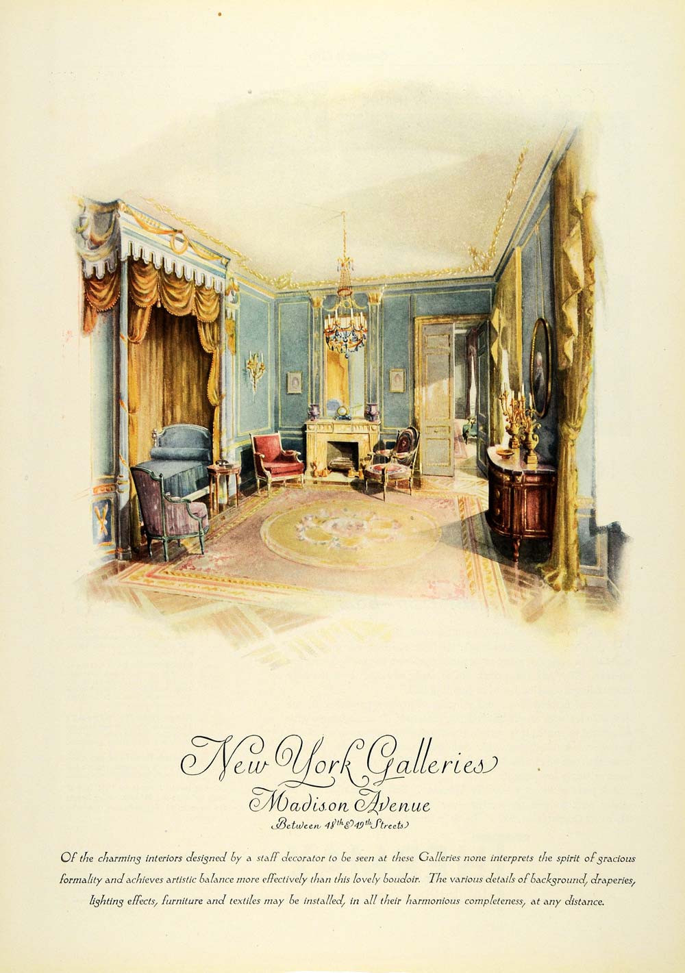 This is an original 1931 color print ad for the New York Galleries on Madison Avenue.