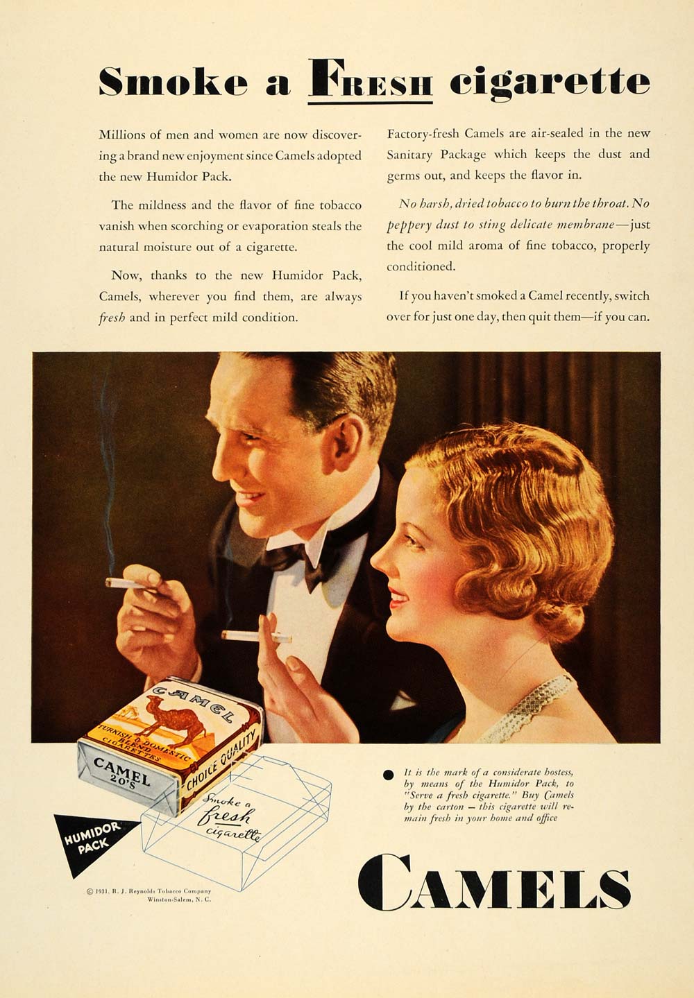 1931 Ad R J Reynolds Tobacco Camel Cigarettes Tobacco - ORIGINAL ADVERTISING F1A