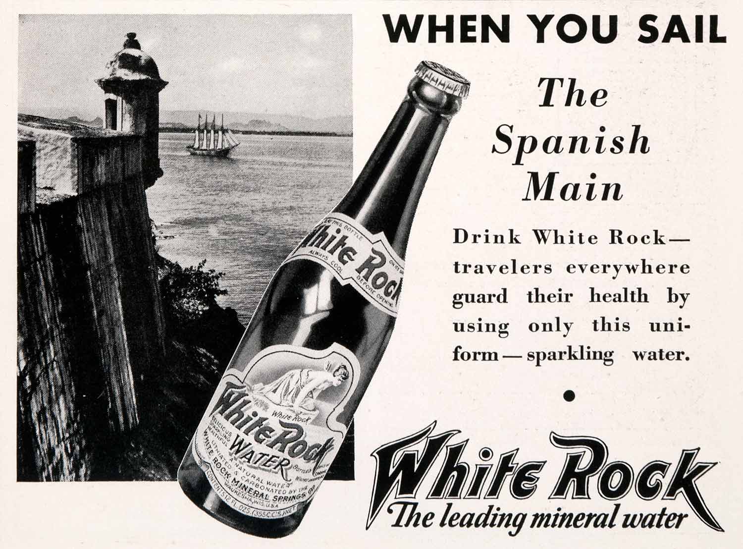 1931 Ad White Rock Mineral Water Glass Bottle Spanish Mail Sailboat Ship NGM4