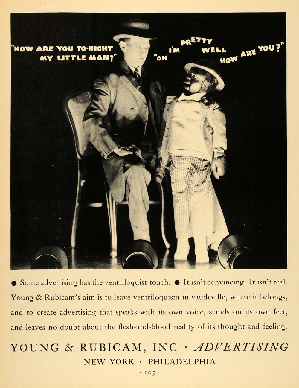 This is an original 1931 black and white print ad for Young & Rubicam Advertising Agency.
