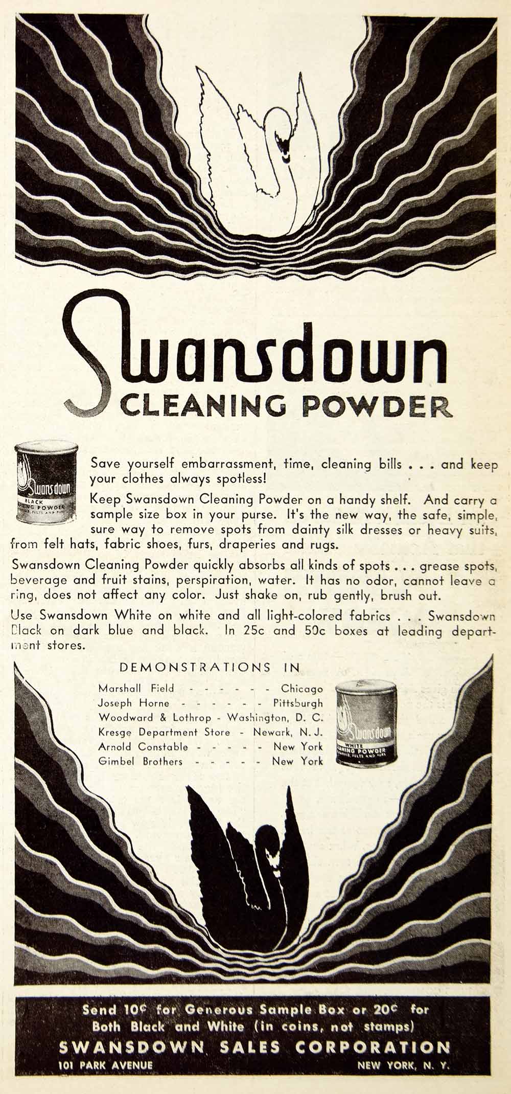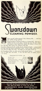 This is an original 1931 black and white print ad for Swansdown cleaning power.