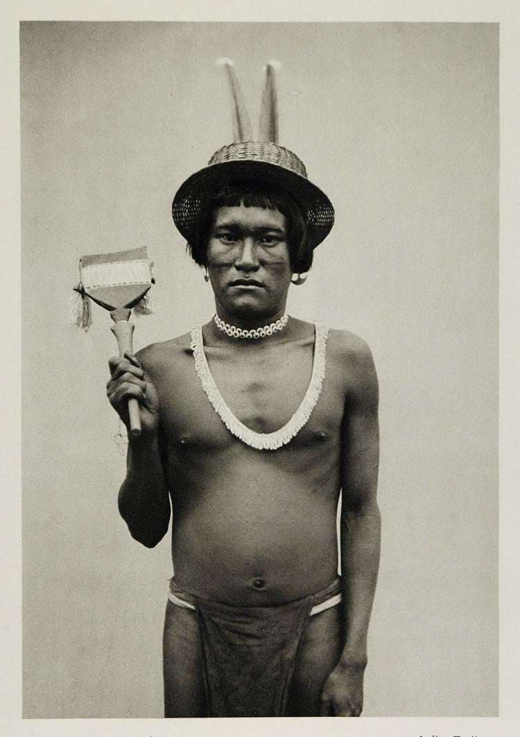 1931 Brazilian Indian Taulipang Man Costume Brazil - ORIGINAL PHOTOGRAVURE SA2