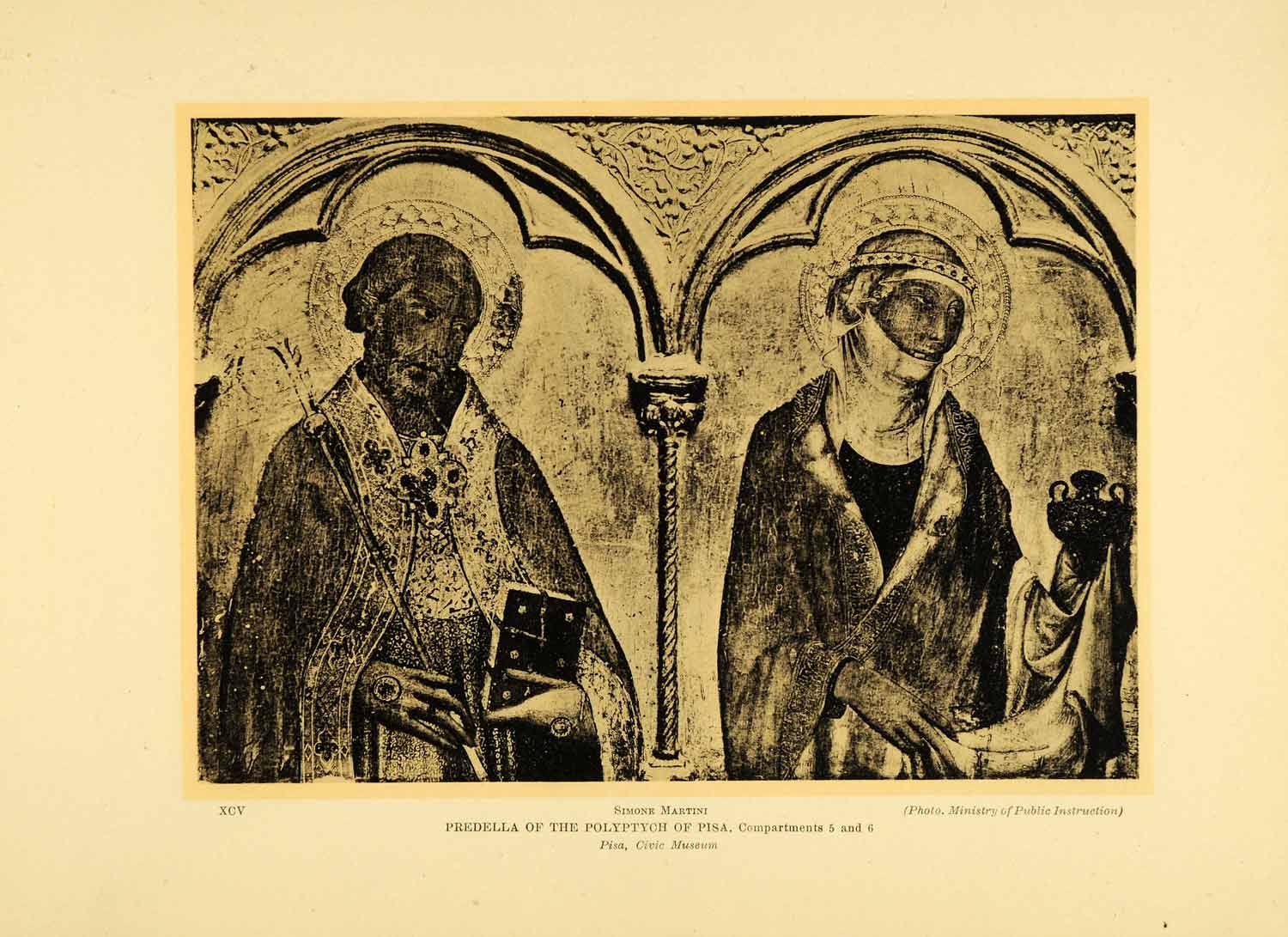 This is an original 1931 two-color collotype of the 5th and 6th compartments of the predella from Italian Trecento artist Simone Martini's