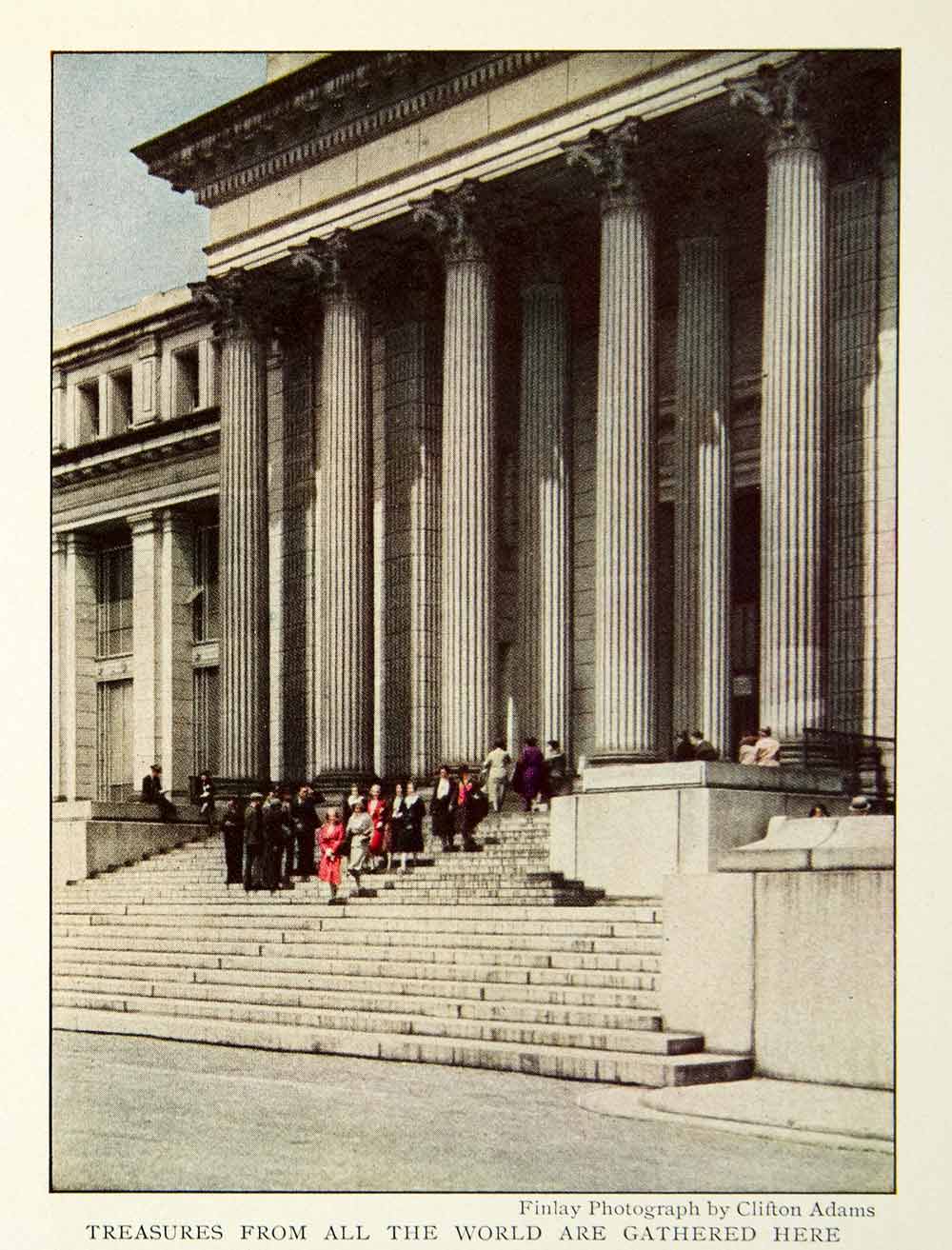 This is an original 1931 color print of the steps of the National Museum in Washington D.C..
