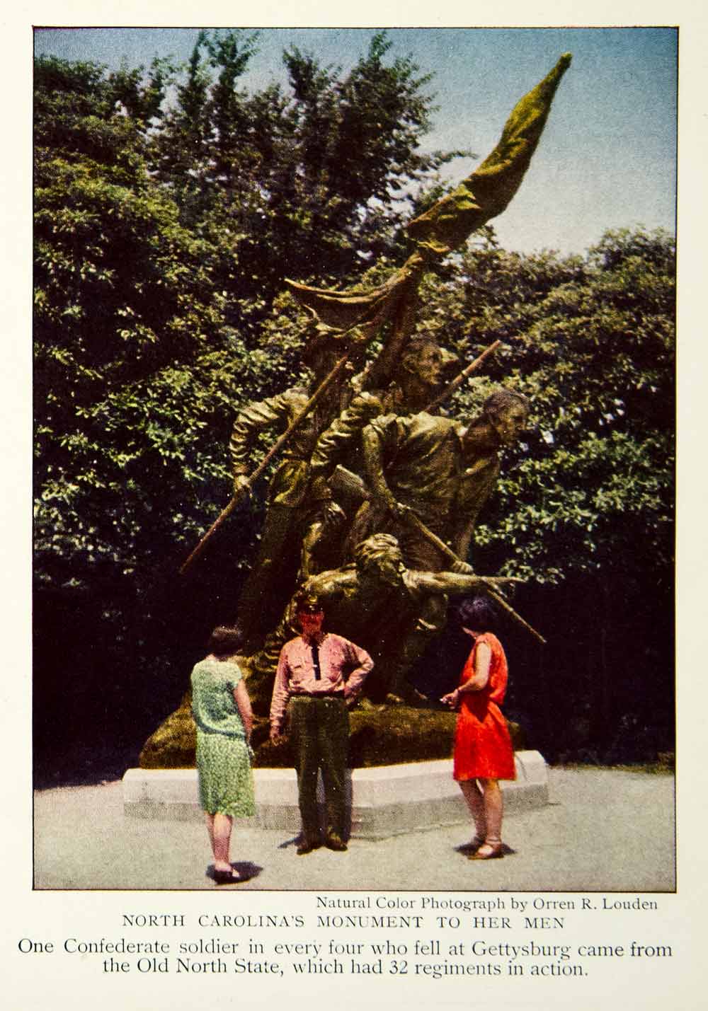 This is an original 1931 color print of North Carolina's Monument, dedicated to the Confederate losses at Gettysburg, roughly 1/4th of the total men lost by the South over the course of the three day conflict.