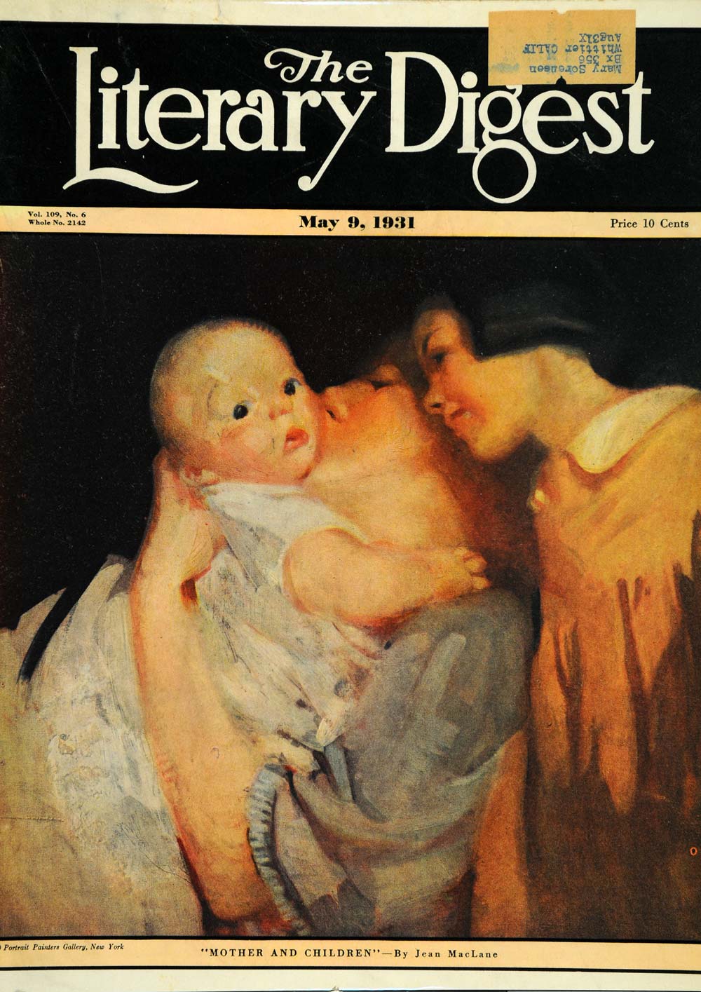 The Literary Digest with an illustration of a painting "Mother and Children" by Jean MacLane.
