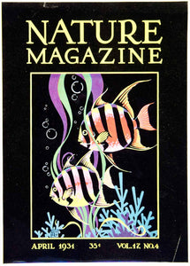 This is an original 1931 color photolithograph cover for Nature Magazine, April 1931 featuring an illustration of tropical fish by Guy Fry.