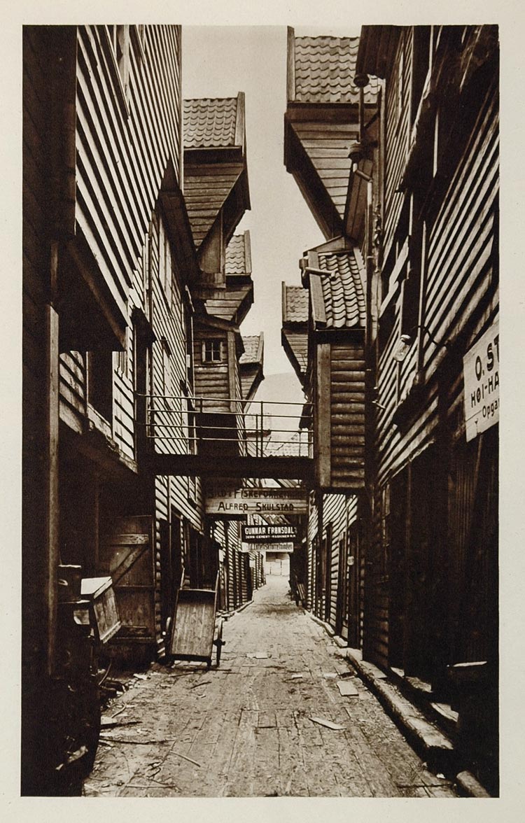 1931 Houses Bredsgarden Tyskebryggen Bergen Norway - ORIGINAL PHOTOGRAVURE NW1