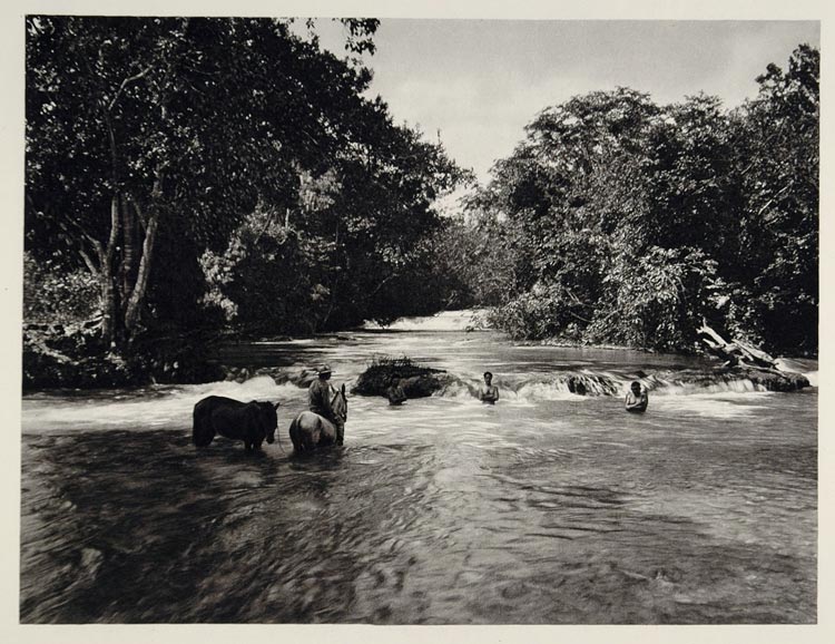 1931 Men Horses Rio Blanco River Honduras Photogravure - ORIGINAL SA2