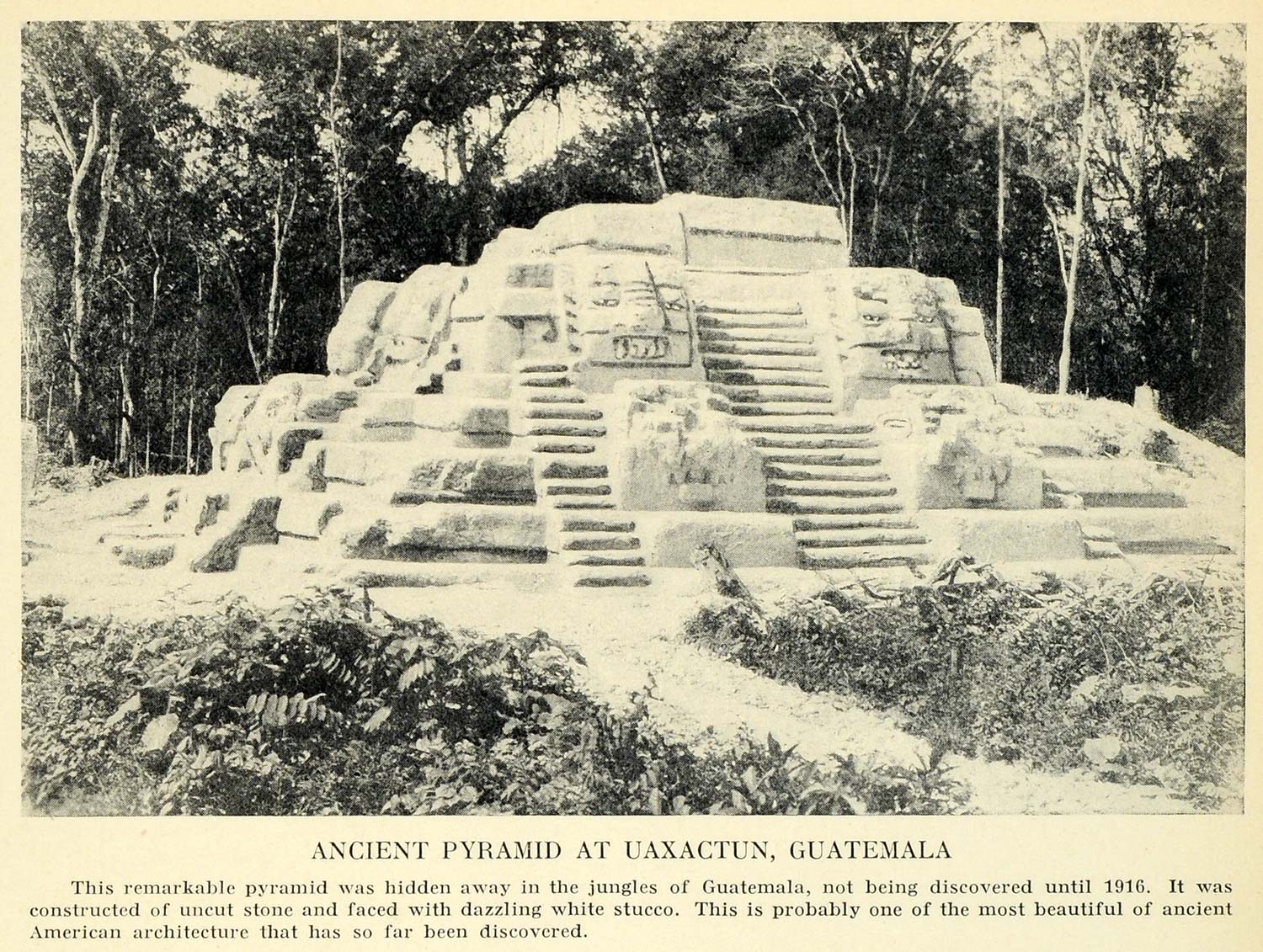 This is an original 1931 halftone print of an ancient pyramid in Uaxactun, Guatemala.