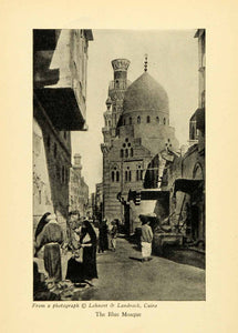 This is an original 1931 halftone print of the ancient Aqsunqur Mosque (Blue Mosque) in Cairo, Egypt, which was originally erected in 1347. As of 2008, the structure underwent extensive renovations.