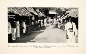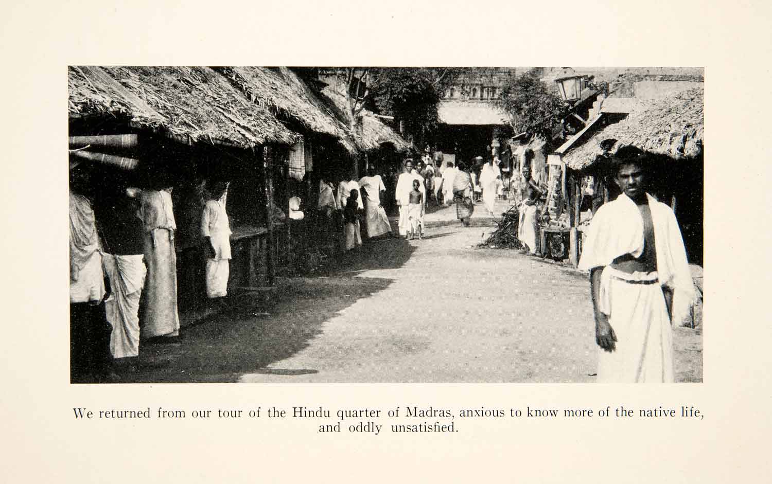 This is an original 1931 black and white halftone print of a street in the city of Chennai, also known as Madras, in India. This city lies along the coast of the Bay of Negal and is the capital of the state of Tamil Nadu.
