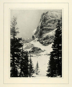This is an original 1931 halftone print of a view of Notchtop Mountain at the Rocky Mountain National Park. In the warmer months Lake Odessa is visible at the base.