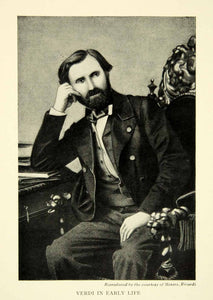 This is an original 1931 black and white halftone print depicting a portrait of Giuseppe Verdi as a young man.