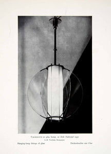 This is an original 1931 black and white halftone print of a hanging lamp made with glass, made in Sweden.