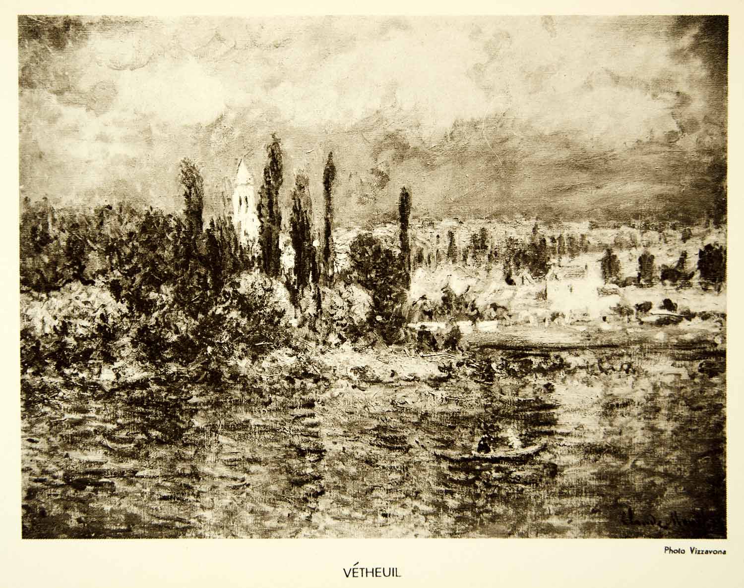1931 Rotogravure Vetheuil Claude Monet Impressionist Art Landscape Nature XAX3