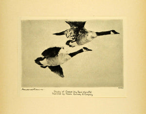 1931 Tipped-In Print Frank W. Benson Canadian Geese Flying Sketch Hunting Birds