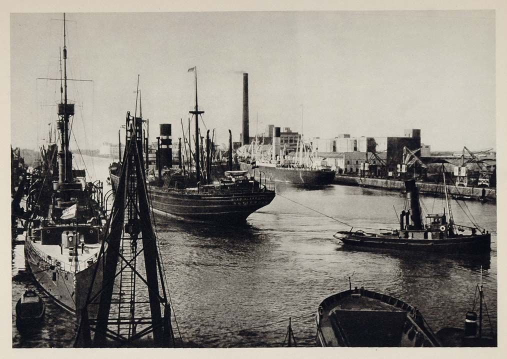 1931 Tugboat Ships Harbor Rio de La Plata Argentina - ORIGINAL PHOTOGRAVURE SA1