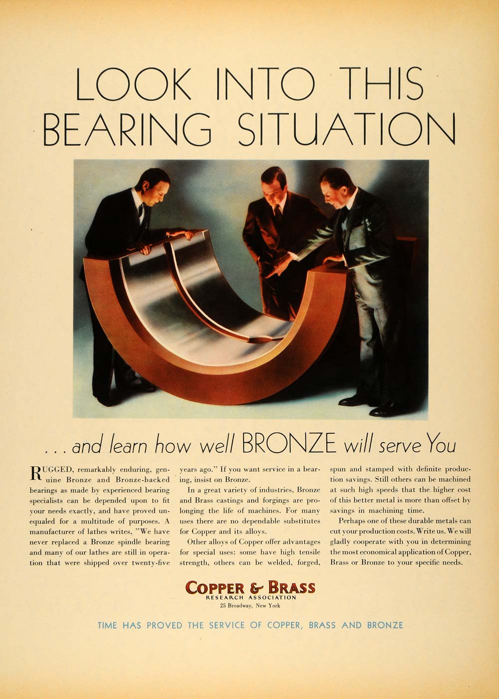 This is an original 1932 color print ad for Copper and Brass Research Association.