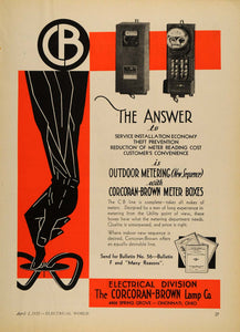 This is an original 1932 color print ad for the Outdoor Metering with Corcoran-Brown Meter Boxes from Corcoran-Brown Lamp Company located at 4900 Spring Grove, Cincinnati, Ohio.