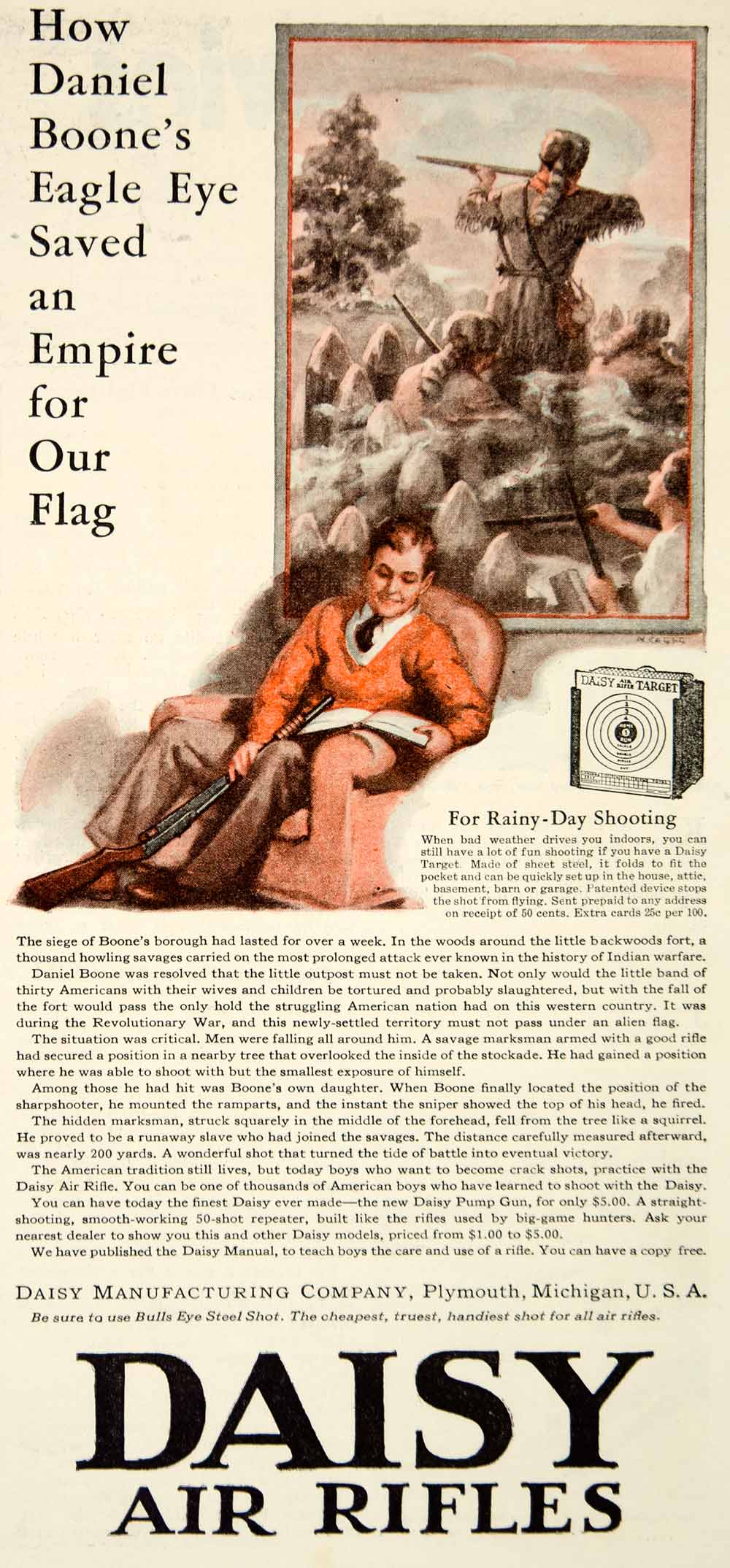 This is an original 1932 color print ad for Daisy Air Rifles, from the Daisy Manufacturing Company in Plymouth, Michigan.