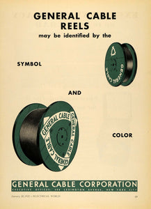 This is an original 1932 color print ad for the General Cable Reels from General Cable Corporation located at 420 Lexington Avenue, New York.