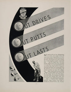 This is a very nice original 1932 print ad from The L. A. Young Golf Company, Detroit, for their line of Hagen products including Hagen balls, Hagen Woods, and the Hagen "Compact Blade" Irons.