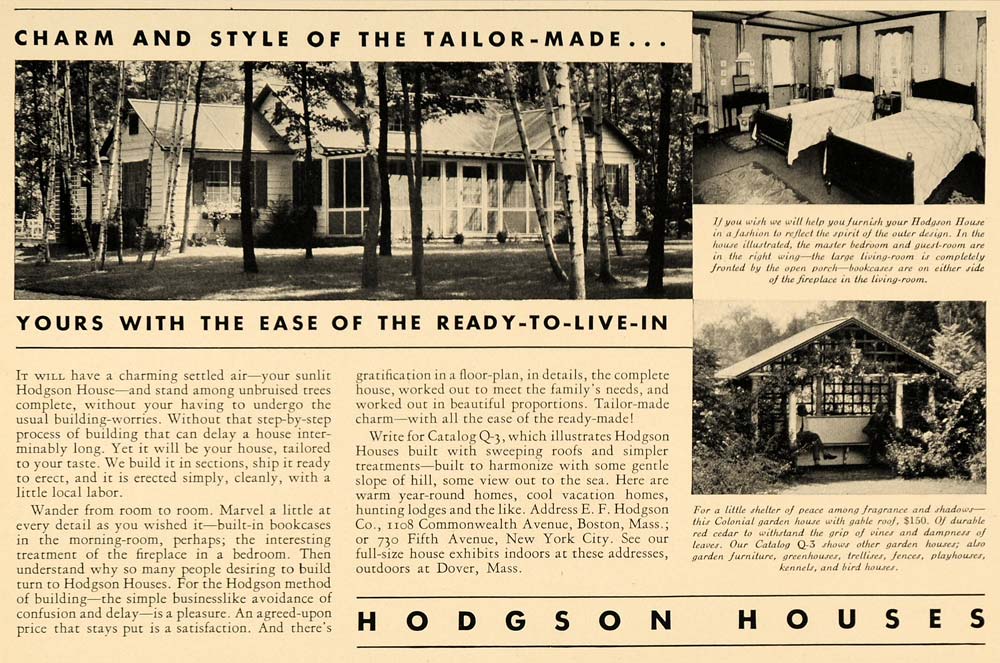 This is an original 1932 black and white print ad promoting the Hodgson rental houses from E. F. Hodgson Company located at 1108 Commonwealth Avenue, Boston, Massachusetts.