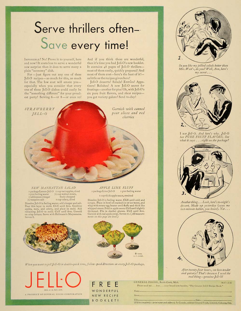 1932 Ad Jell-O Gelatin Salad Lime Fluff Recipes Fruit - ORIGINAL ADVERTISING MX4